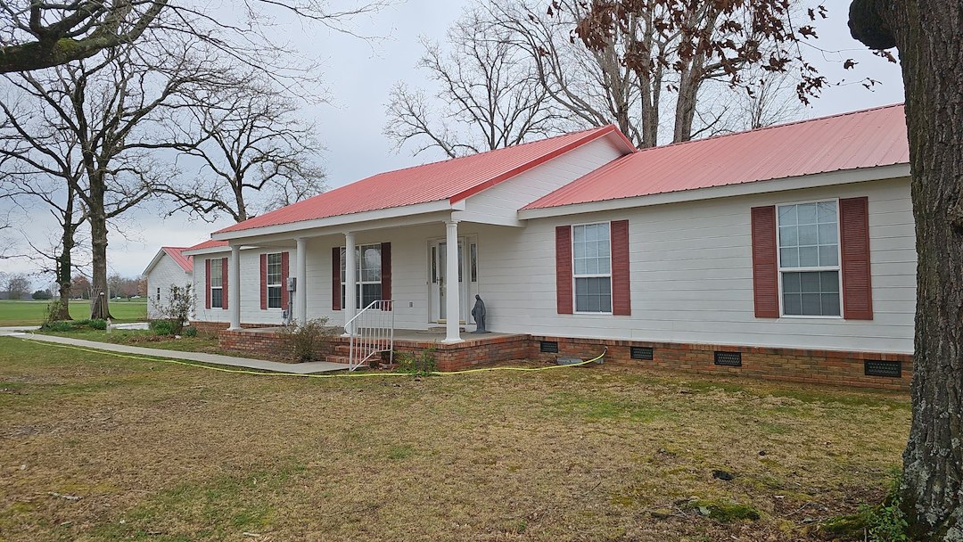 Our team recently completed a professional soft wash roof cleaning on a red metal roof in Loretto that had years of heavy algae buildup. The roof had become dull and discolored from dark organic growth, hiding the roof’s original vibrant red finish.